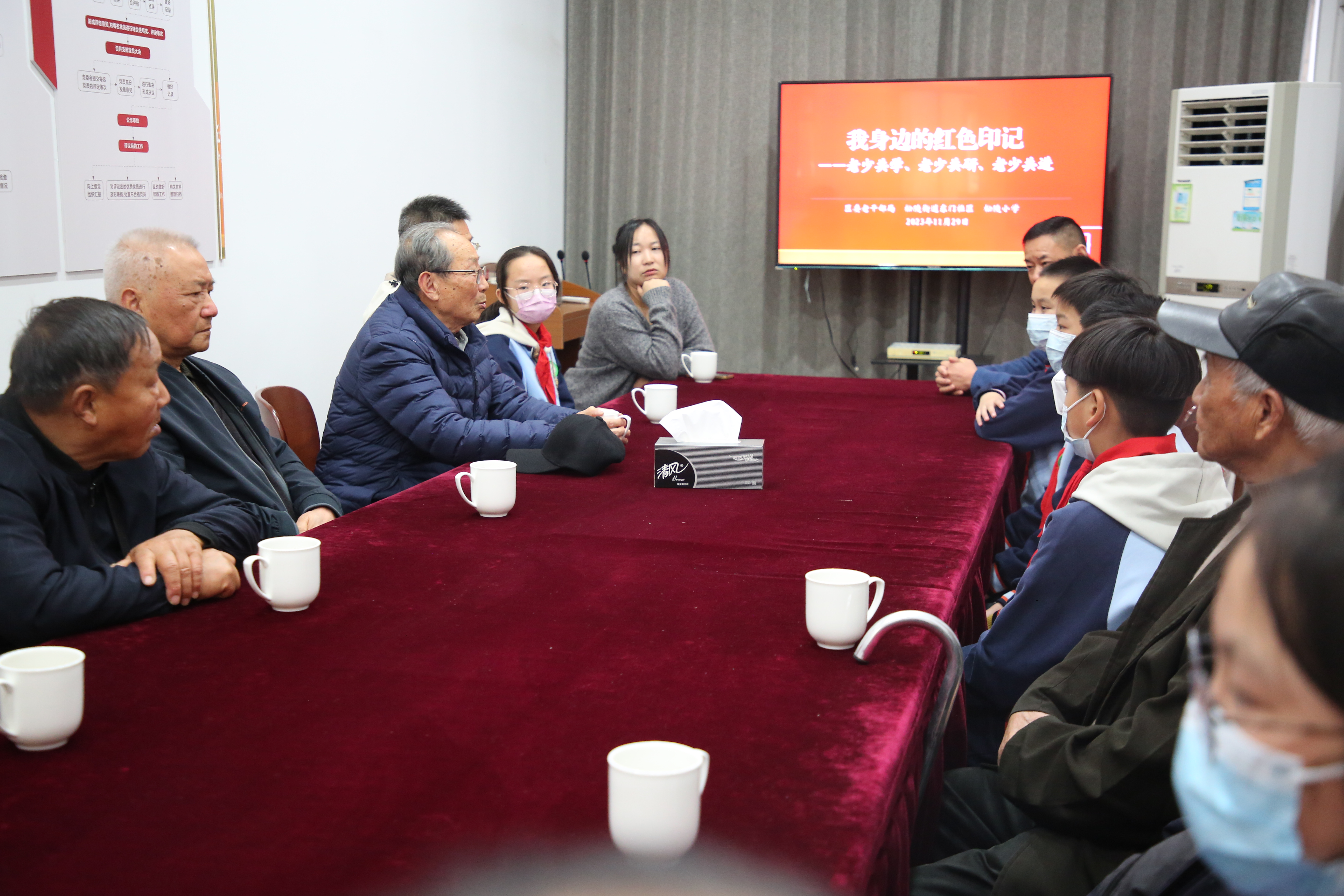 参观后,还与五老志愿者开展“我身边的红色印记——老少共学、老少共研、老少共进”座谈活动。参加过抗美援朝的朱志明老兵感慨,参观了红色印记展示馆特别是抗美援朝的展馆,吴江的英雄似乎就在身边;并向少先队员们讲述了自己亲身经历的在炮弹中修桥的惊险故事。老兵蔡源黎讲述了修建成昆铁路的艰难历程,他动情地表示,成昆铁路是铁道兵战士用鲜血和汗水浇铸而成的,是2100多名铁道兵官兵用生命托举起来的。