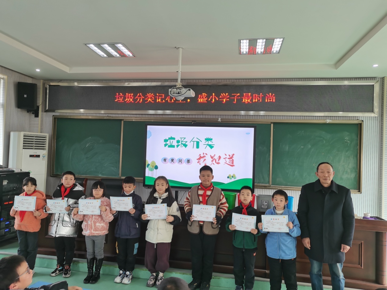今年9月吴江区生活垃圾分类管理工作领导小组办公室、吴江区教育联合开展“第三届生活垃圾分类“家校社联动”实践活动”,旨在通过孩子将 “垃圾分类人人参与”的倡议带回家,将平时在学校学到的垃圾分类知识带回家。充分发挥“小手拉大手”的带动作用,实现垃圾分类“家家都做、人人都会”的新行为。由点及面推广,让垃圾分类渗透到每个家庭,以小家庭的进步,带动大家庭的进步,盛泽小学在全体三年级学生中积极动员,取得了很好的效果,表彰会上,陈静老师静老师、关工委“五老”志愿者张海荣为荣获“垃圾分类小达人”“垃圾分类小标兵”“垃圾分类小能手”称号的同学颁发奖状和奖品。