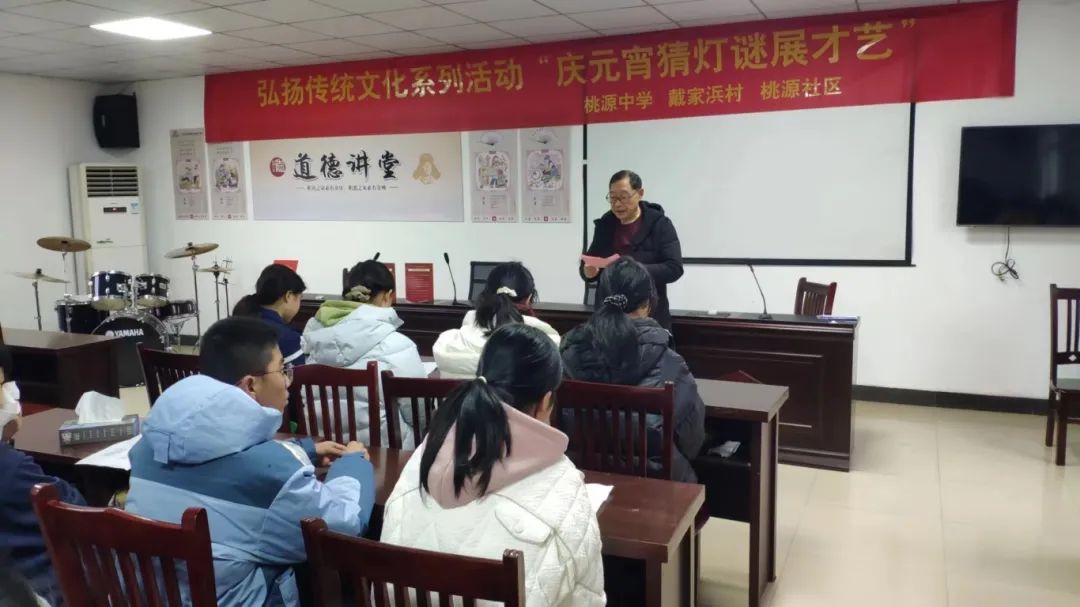 为传承和弘扬传统节日文化,营造传统佳节喜庆、祥和的节日气氛,增强广大青少年对传统文化的认同感和自豪感,2月24日,桃源中学关工委联合桃源社区、戴家浜村在桃源镇戴家浜村村委大会议室举办了一场精彩纷呈的元宵节庆祝活动。