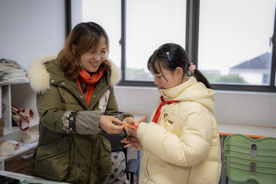 制作完成后,学生们激动地将自己亲手制作的钥匙扣和刺绣赠予女教师与母亲,表达了对她们的敬爱和感恩之情。她们收到礼物后纷纷表示感动和喜爱,并对学生们的努力和创意表示赞赏。