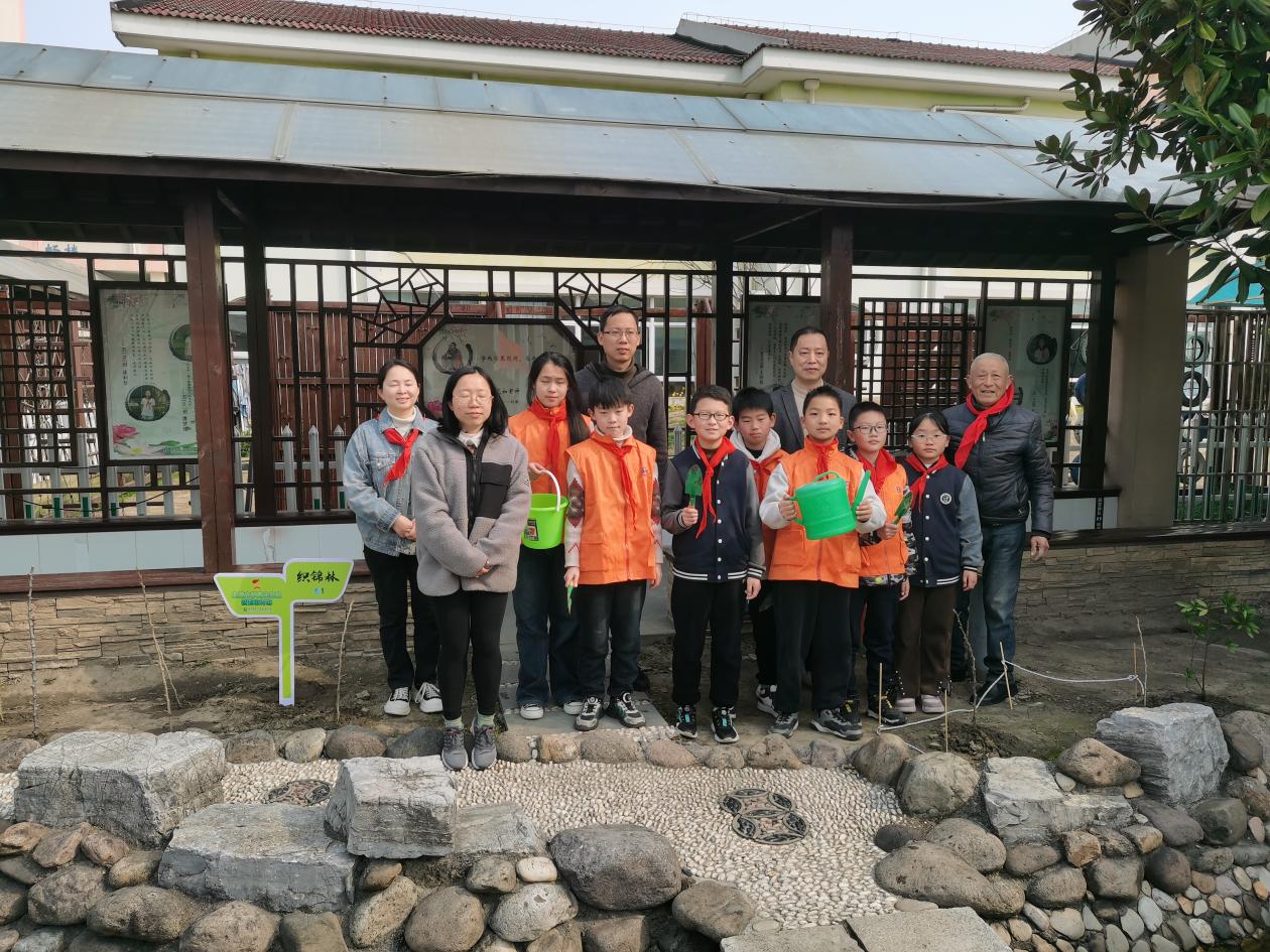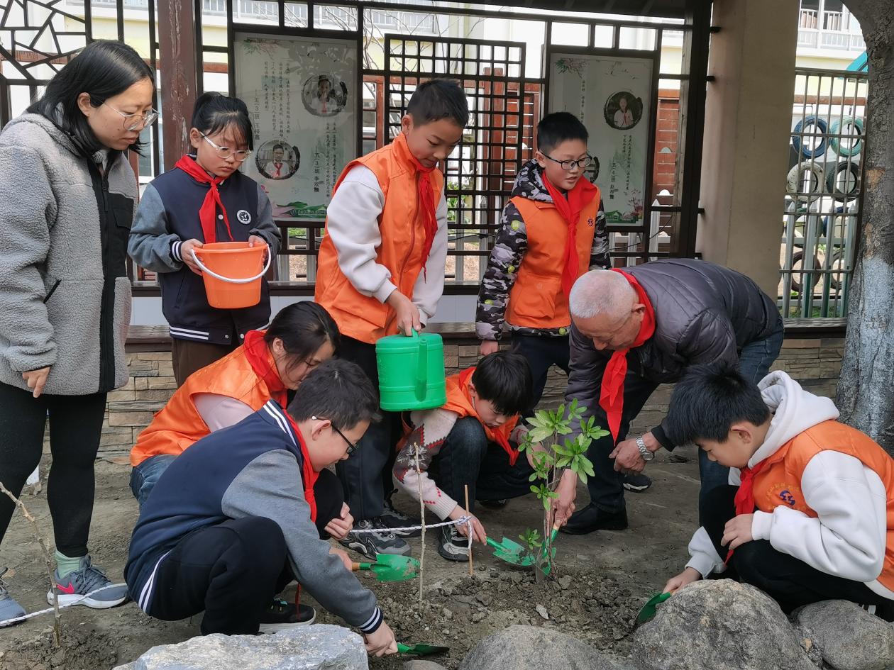 盛泽小学兴桥校区举行“播撒绿色希望,共建美丽校园”植树节主题国旗下讲话暨红领巾“织锦林”揭牌仪式