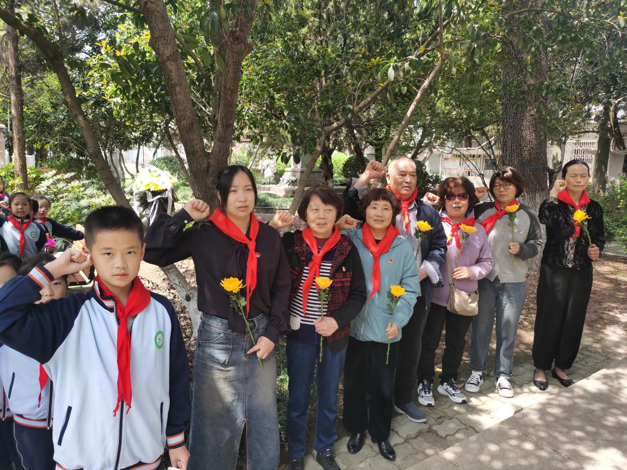 活动中,五老志愿者和少先队员怀着无比崇敬的心,向长眠在此的张应春烈士敬献花篮,全场颔首默哀,一股庄严的敬意在四周弥漫开来。全体少先队员还在五老志愿者的带领下高举右拳,老少重温入队誓词,宣誓声在空中回响,传递的是松小学子继承先烈遗志、牢记使命担当的决心。