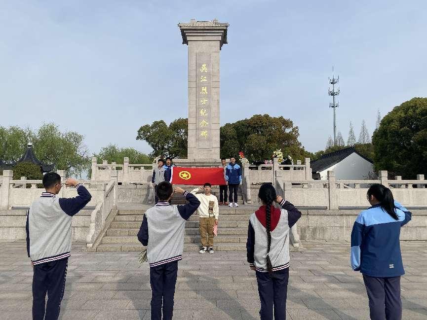 清明节将至,为深切缅怀革命先烈的丰功伟绩,继承和发扬老一辈革命家的优良传统,进一步培养青少年的爱国主义精神和使命担当的责任意识,4月1日,芦墟初级中学关工委带领部分学生代表来到吴江烈士陵园开展“缅怀革命先烈,弘扬爱国精神”清明祭扫主题活动。