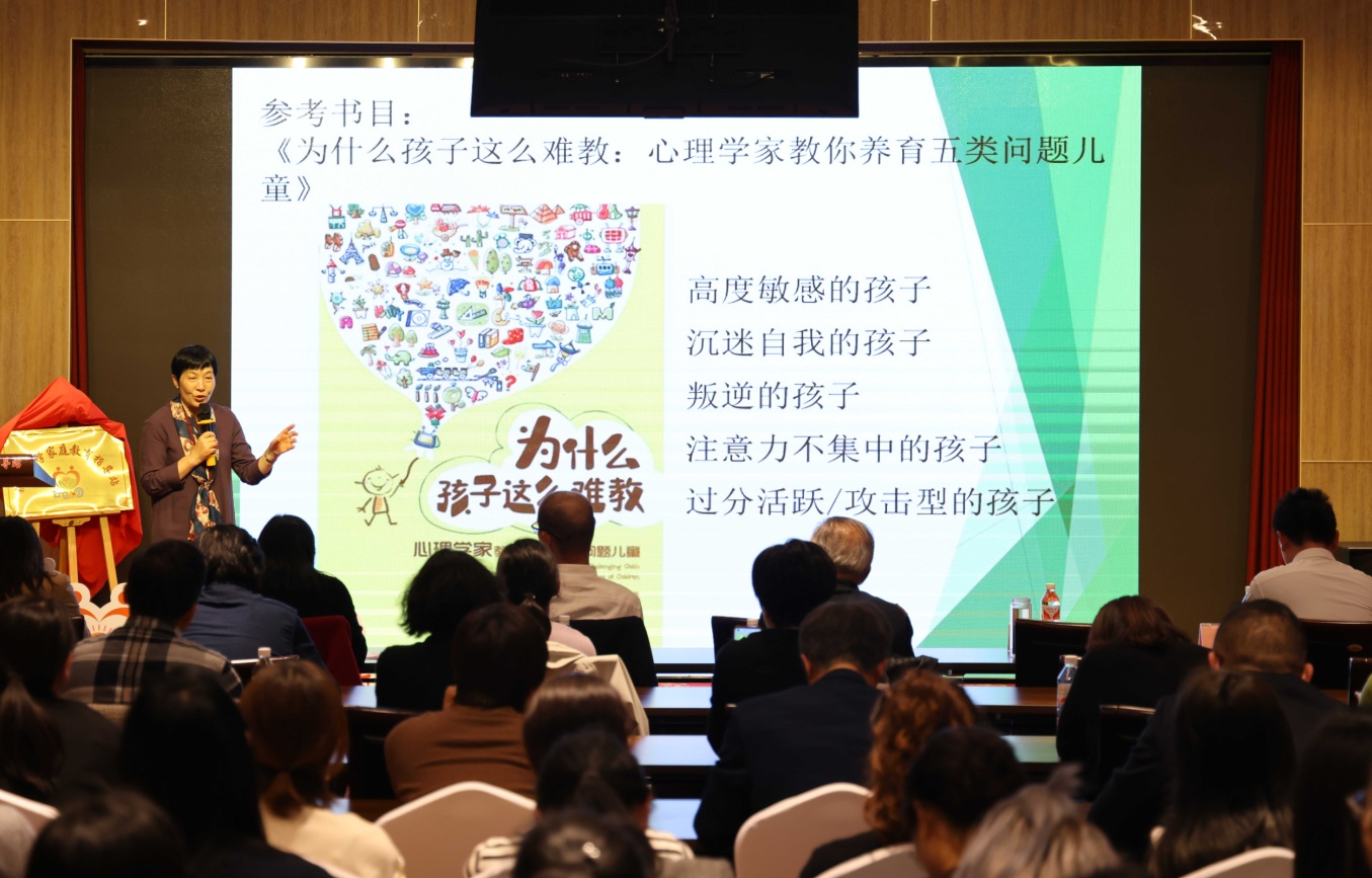 俞弘声、黄辛隐、施兰红、申建新共同为“Tong心圆”家庭教育指导站揭牌。冯建华和陈小华为区级专家指导团队颁发聘书,戴惠林和严卫强为校级团队颁发聘书。刘坤、施兰红、俞弘声等嘉宾为本次活动致辞,充分肯定铜罗小学在推动家校社共育、提升家庭教育质量上迈出了坚实的一步。铜罗小学特聘的心理副校长、苏州大学教育学院教授黄辛隐为大家带来专题讲座,引导家长关注孩子的情绪表现,从心理学的专业角度阐述了家庭成员关系中的沟通技巧,并从青少年的身心特点指出了科学育儿的正确途径。