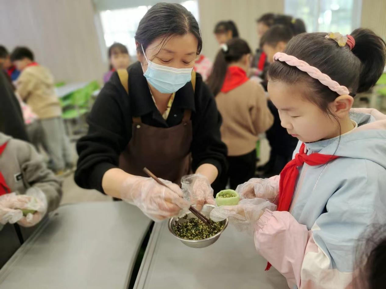 在这个充满生机与希望的季节里,学校举办了一场别开生面的青团制作活动,学校德育处特别邀请了七都手艺人杨阿姨向大家详细介绍了青团的历史背景、制作方法和寓意,现场演示了青团的制作过程,详细讲解了青团制作的要领,同学们按照杨阿姨的指导,认真揉搓、包馅、合圆,每个步骤都做得有模有样,一同感受传统文化的魅力,体验传统美食的制作乐趣。