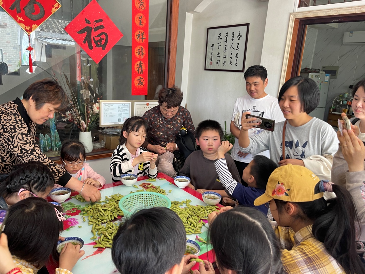 如歌五月,是时光奉献给劳动者的赞歌。5月3日下午,七都镇新时代文明实践所、开弦弓村委会、江村实验学校关工委、少工委联合开展“‘劳’以启智 ‘动’以润心”劳动实践活动。活动以“寻知江村 乐享课堂”、“寻味乡土 熏豆烹茶”、“寻美农耕 亲近自然”三个环节进行。队员们在“吴江时代新人”(身边好人)周小芳奶奶和中国农业大学研究生姚望的带领下了解了劳动节的知识、体验了熏豆茶的制作过程、了解了水稻的一生并亲手种植了秧苗。活动结束后,大家纷纷表示,会将小盆栽作为自己的“责任田”带回家细心照顾。