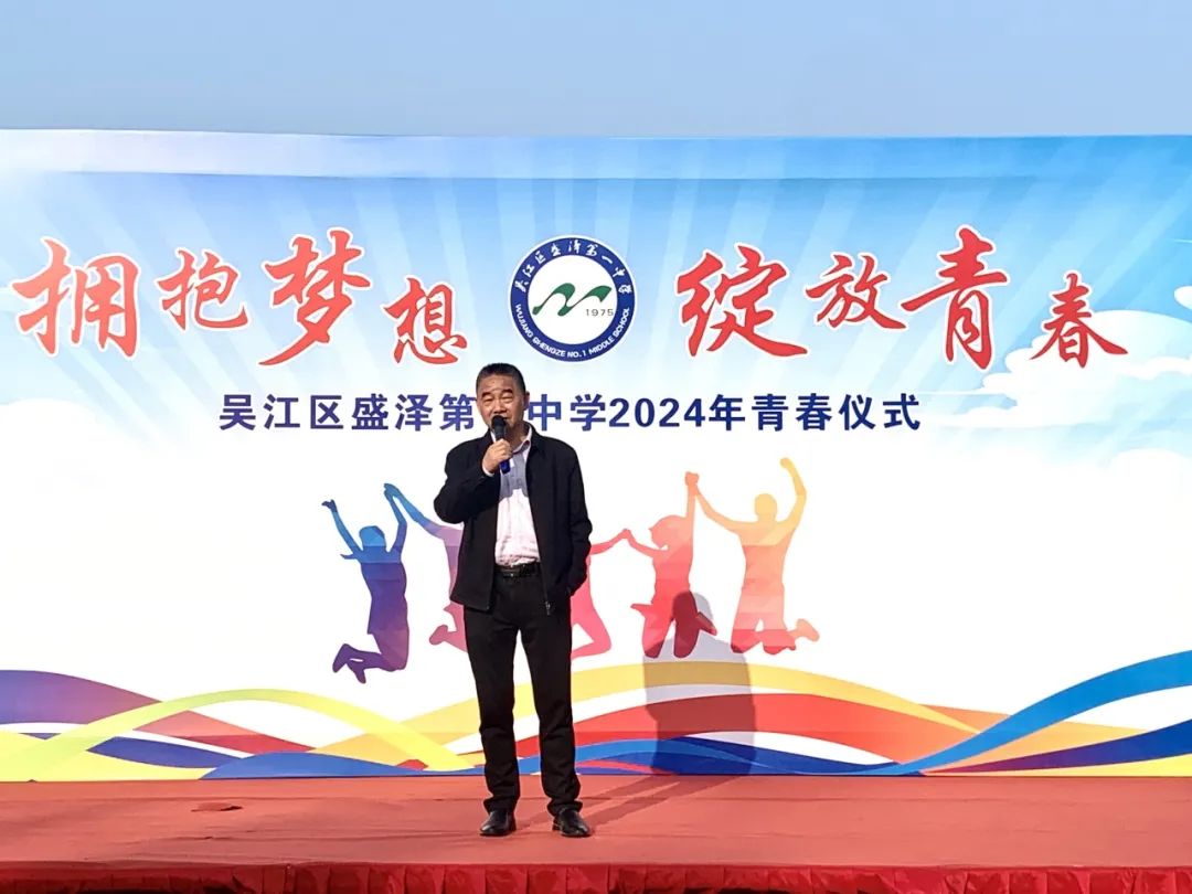 万物随春醒,美好皆可期。为了指导学生珍惜青春好年华,迈好青春第一步,养成青春好习惯,2024年4月30日下午,盛泽一中全体初二学生齐聚学校操场,隆重举行“拥抱梦想 绽放青春”的青春仪式。陆建荣书记、居海燕关工委主任、王瑞副校长、各中层领导、退休教师代表、初二年级师生及家长参加了本次活动。仪式由初二(12)班杨书诚、卢姗姗两位同学主持。