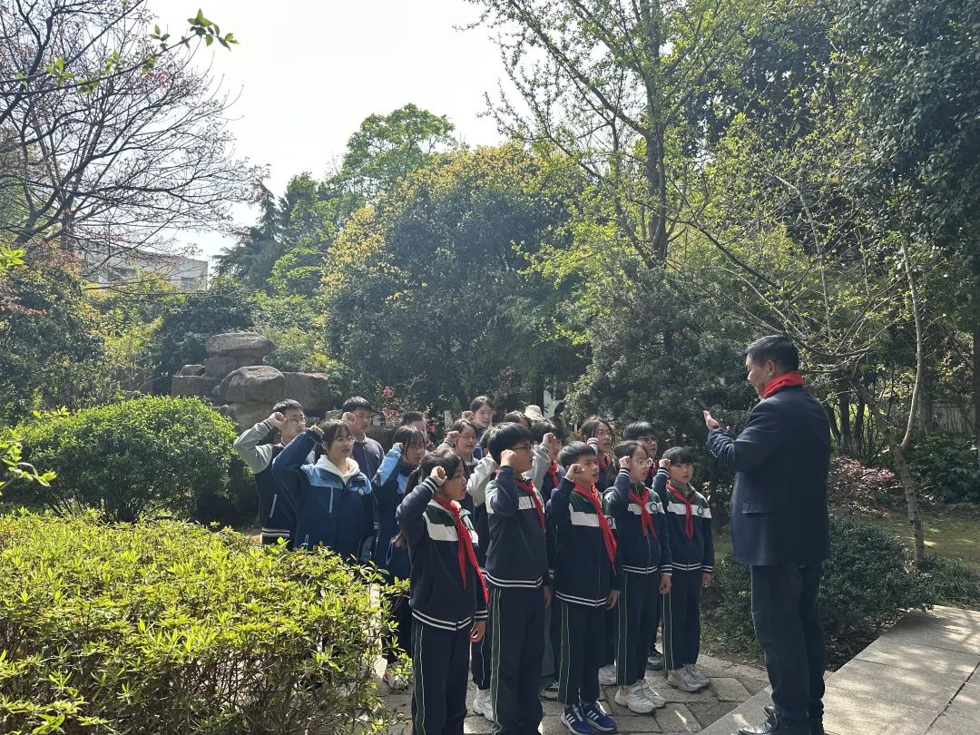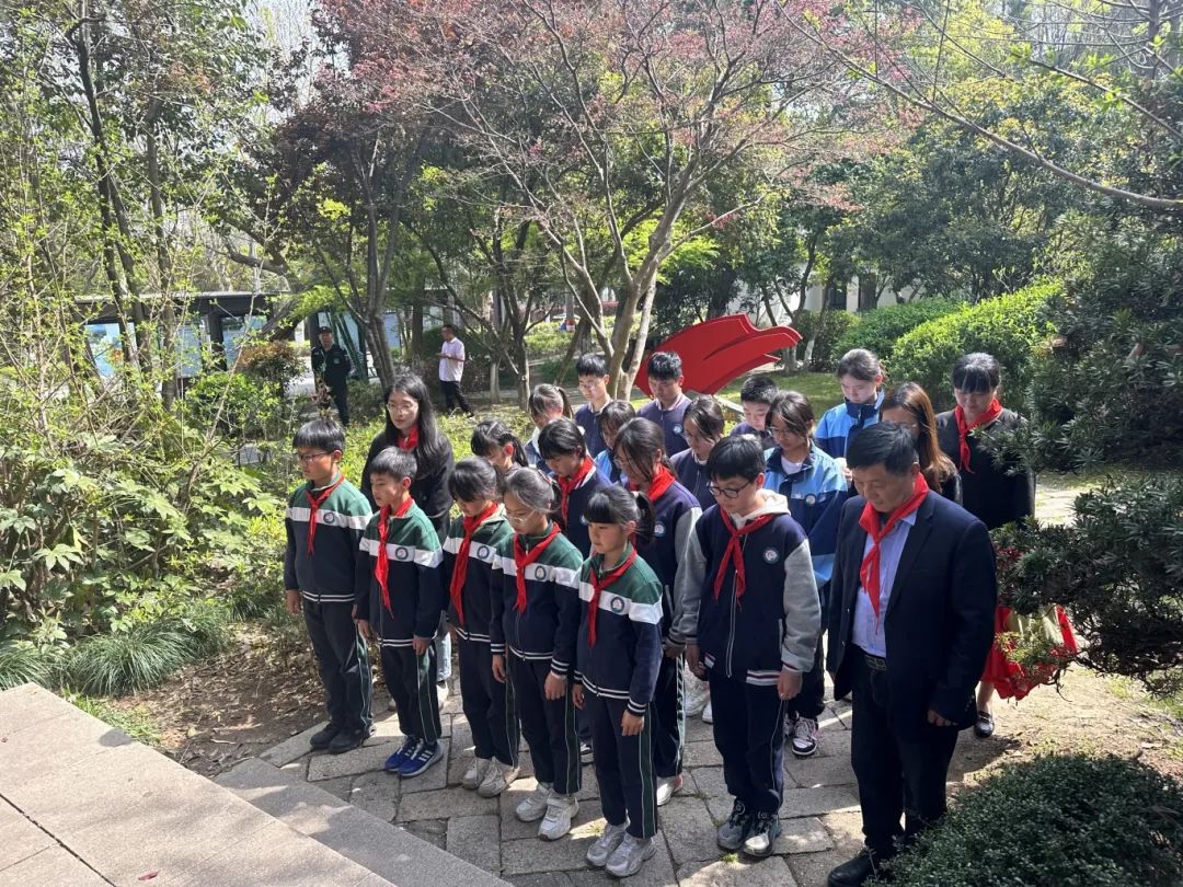 又是一年清明日,无限哀思祭英烈。在清明节来临之际,吴江区菀坪学校少先队和团总支联合开展“清明融于情,红色润于心”清明节主题教育活动,深切缅怀先烈们的丰功伟绩。4月1日下午,少先队和团总支的部分代表来到松陵公园,举行清明节祭扫活动。参加祭扫的学生们怀着无比崇敬的心情,在张应春烈士纪念像前庄严肃立,向为新中国成立而浴血奋斗的烈士致敬。他们屹然肃立,静静默哀,感受思想的洗礼和升华。默哀结束,全体学生围绕纪念像一圈,瞻仰纪念像,并敬献鲜花。