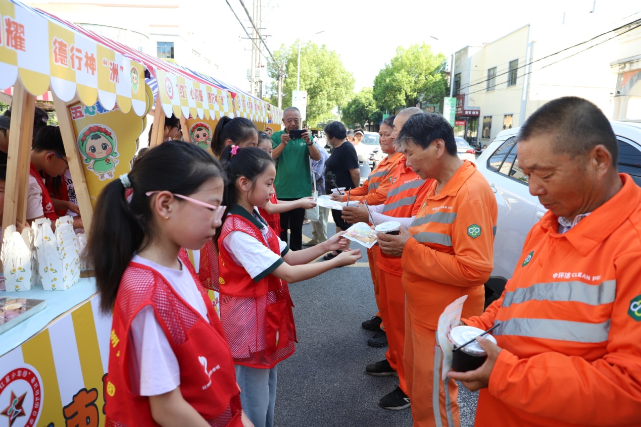 本次闭幕式开始前,还在学校大门口开展“步步登‘糕’,爱心义卖”和娃集市,同学们将在暑托班烘焙课堂中,所制作的各类糕点、饮品进行义卖,并为环卫工人赠送酸梅汤等降暑饮品,获得了在场群众的点赞!活动中,同学们将义卖所得的善款,认购了中国邮政的爱心邮包,中国邮政盛泽支局计利红局长上台接受捐赠,对同学们的爱心表示感谢,据悉本次爱心邮包将邮寄到学校结对的贵州省印江市刀坝镇完全小学,让少数民族同学也能感受到这夏日的清凉,民族团结一家亲,童心共筑中国梦。