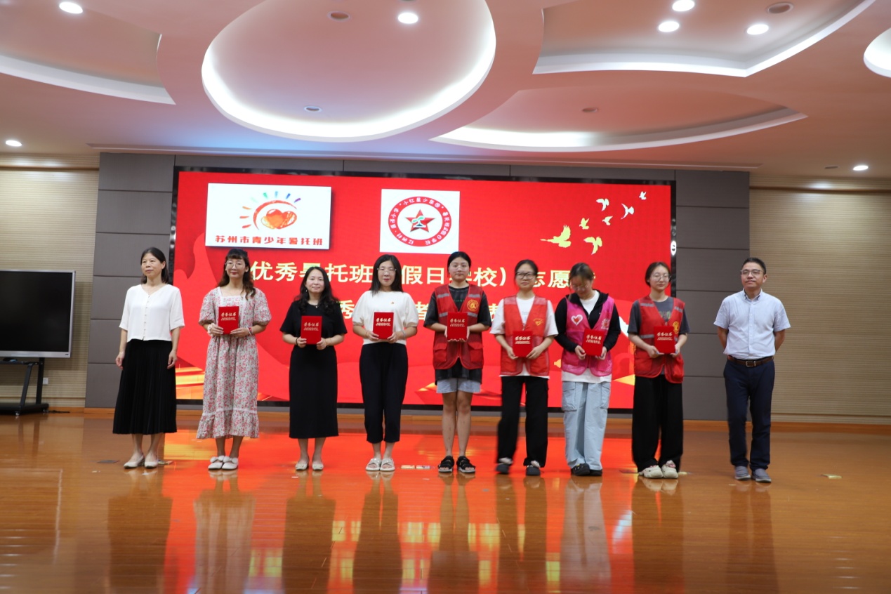 闭幕式在雄壮的国歌声中拉开了序幕,首先,暑托班辅导员作工作总结,何老师围绕三个关键词作为总结,“感谢”所有的上课老师,志愿者的辛苦付出;“感动”家校社的全力配合;“感恩”红洲村、盛泽小学的大力支持,无私奉献,为孩子们打造了一片温馨的家园。与会领导为荣获优秀志愿者,优秀志愿者教师,优秀学员称号的老师、同学颁发荣誉证书。