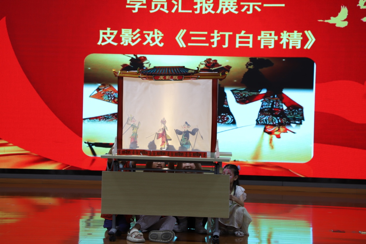 暑托班同学们也带来了精彩的文艺展演,皮影戏《三打白骨精》、国风走秀,竖笛吹奏,合唱《小美满》轮番上演,充分展示了同学们在这二十天时间里所学所得所悟。