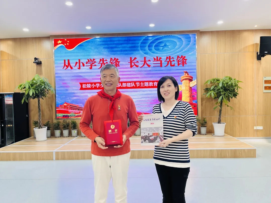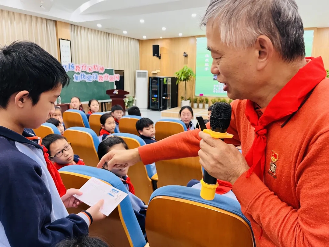 活动中,学校党支部副书记谢汝苹为于振华爷爷颁发校外辅导员聘书,相信于爷爷的加入一定能为学校少先队活动注入新的内涵,传承红色基因,赓续红色血脉。