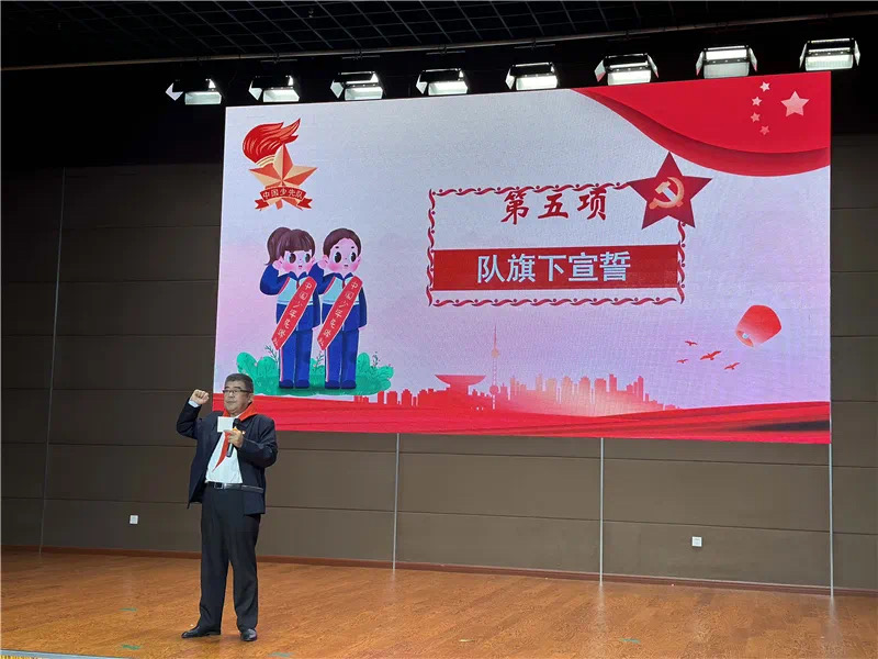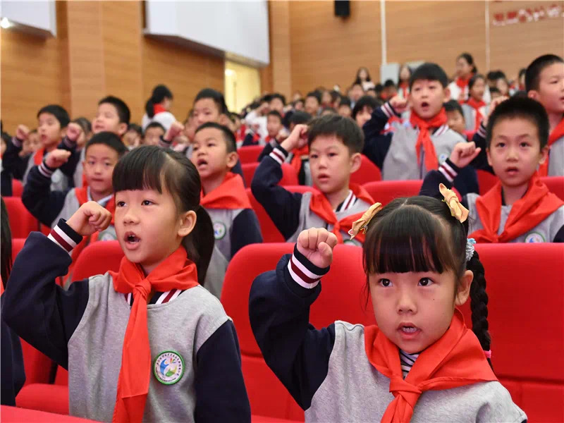 新队员们在老党员沈健康爷爷的带领下在队旗下庄严宣誓:“我是中国少年先锋队队员。我在队旗下宣誓:我热爱中国共产党,热爱祖国,热爱人民,好好学习,好好锻炼,准备着:为共产主义事业贡献力量!”那稚嫩而坚定的声音,在校园上空回荡,表达了他们为共产主义事业奋斗的决心。