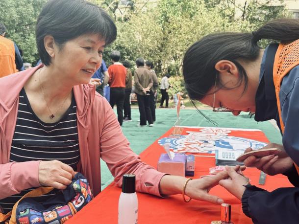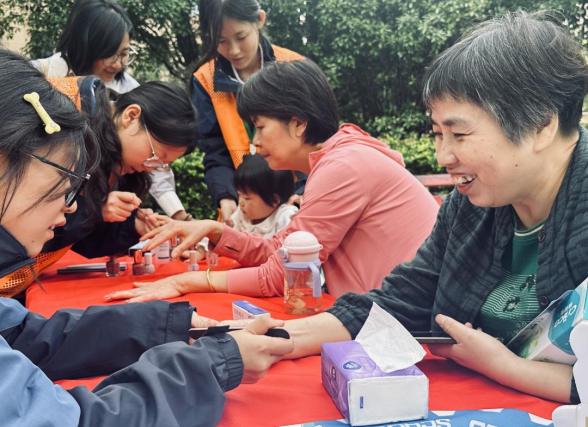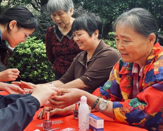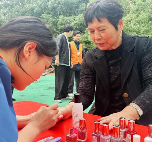 接着,志愿者们为社区老人带来了一项特殊的服务——美甲。古人云:爱美之心,人皆有之。美甲,历经千年的发展,已然成为一个与美共鸣的名词。美甲,不仅深受年轻人的喜爱,老年人同样也有这样的需求。