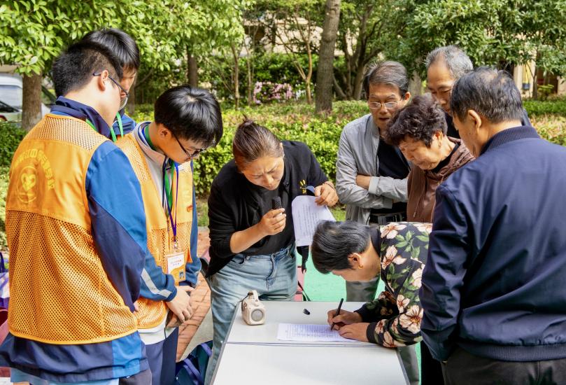 上午8:50分,来自美容美发社、“一心”志愿者社和学生会共十名学生志愿者,在关工委、团委老师的带领下,准时抵达长板社区。