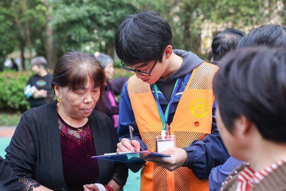 “一心”志愿社的社员们积极投入到赛事的组织和保障工作中,他们被分成若干小组,负责检录、计数、核对等工作,确保运动会顺利开展。
