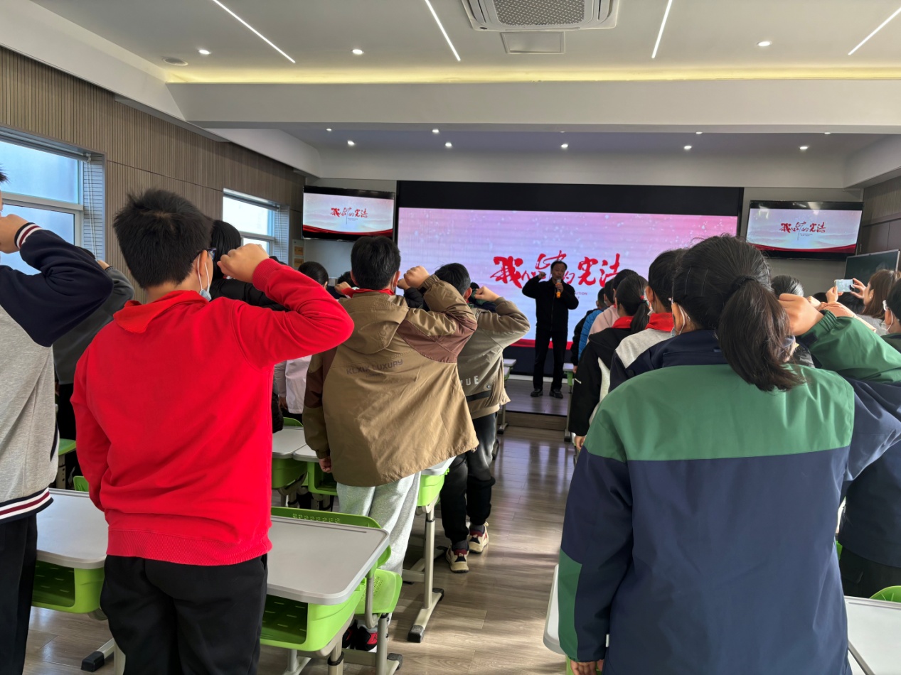 宣讲结束后,董老师还带领学生一起进行了庄严的宣誓仪式。大家右手握拳,目光坚定,齐声宣誓。铿锵有力的誓言在阶梯室上空回荡,表达了大家对宪法的崇高敬意和坚定信仰。