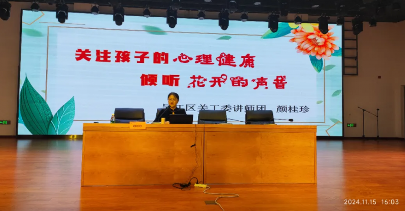 合育有力量,慧爱有温度。学校邀请了吴江区关工委讲师团成员、国家二级心理咨询师颜桂珍校长为全体家长作题为《关注孩子的心理健康,倾听花开的声音》的讲座。颜桂珍校长用亲切的语调和形象的比喻,深入浅出的将理论和案例相结合,让在场的家长们产生了很强的代入感,纷纷表示今天的讲座真的让他们受益匪浅。