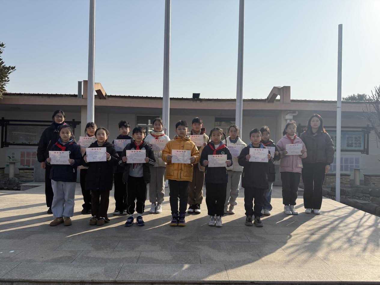 学校少工委何老师首先对本次评选作了相关说明,学校本着公平、公正、公开的原则,在四、五、六年级各班队员自愿申报的基础上,推荐候选人参与校区评选,学校邀请家委会代表、村关工委代表、德育处代共同组成评委组根据参评学生的演讲打分,最终确定2名校级表彰、16名校区表彰对象。活动中,盛泽小学兴桥校区执行校长张丽芳与群铁村关工委冯老师,共同为获奖队员颁发荣誉证书,赠送思政书籍。村校共建,“五心”引路,学校接下来将积极依托群铁村“苏嘉铁路75号桥日军炮楼”等爱国主义教育基地,常态化开展“五心”教育实践活动,促进队员阳光下共成长。