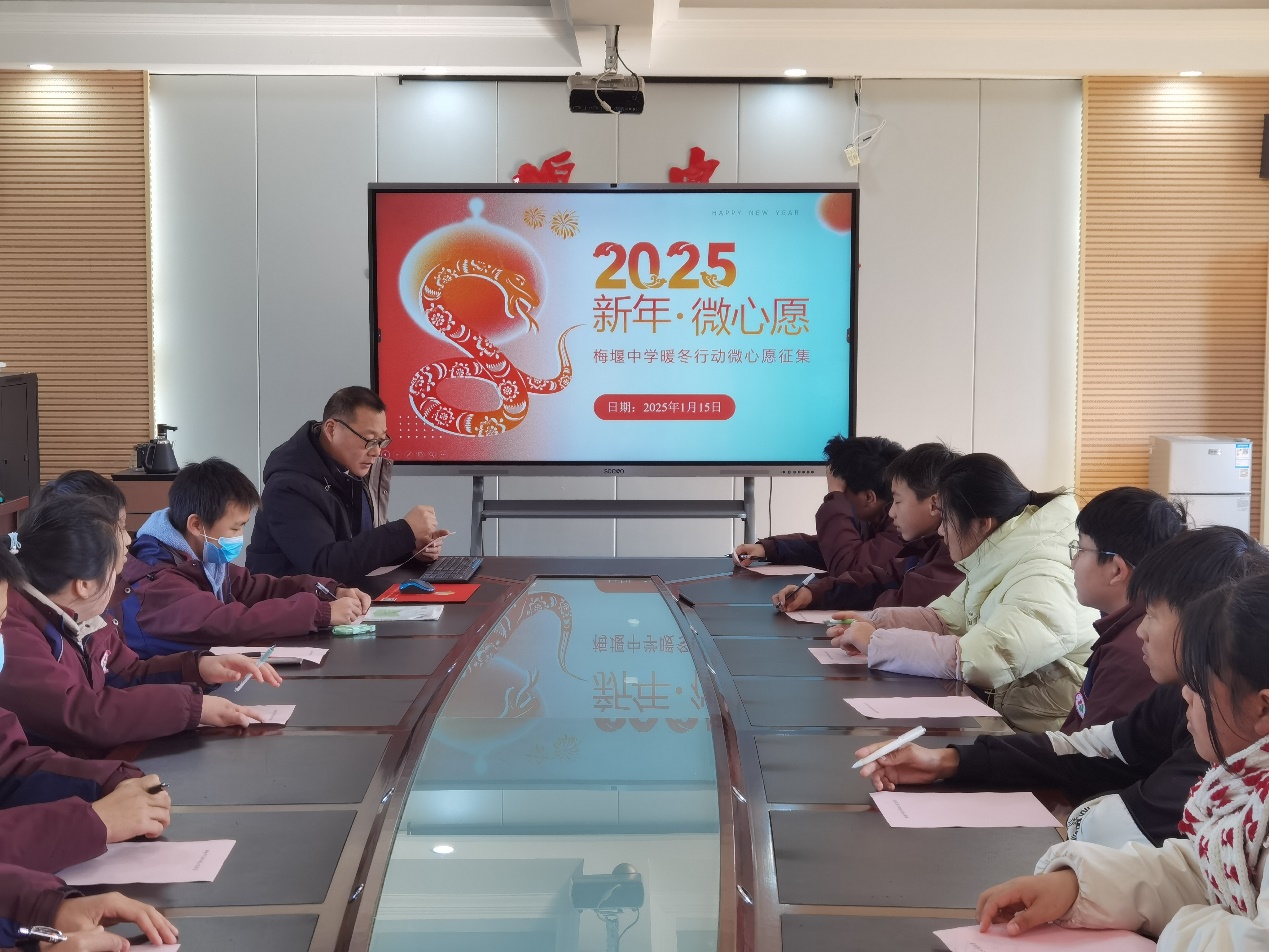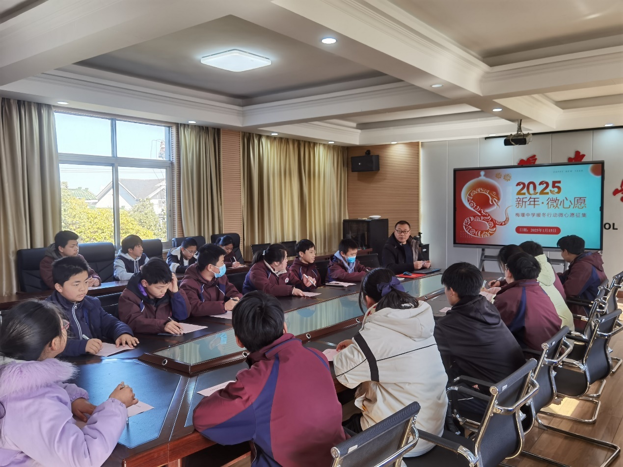 为认真落实省教育厅《关爱青少年生命健康“润心行动”实施方案》要求,切实保障我校学生寒假春节期间的生命健康,给予学生在寒假春节期间全方位的关爱,提升学生的假期幸福感和体验感。1月15日,梅堰中学组织各班级开展“点点微光,照亮梦想”新年微心愿征集活动,学校召集各班级部分学生代表集中行政楼3楼会议室,填写新年微心愿卡片。