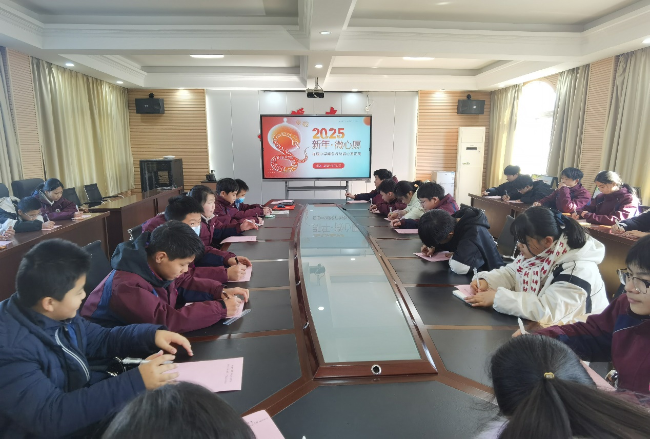 随后,同学们在新年微心愿卡片上写下自己的新年愿望。