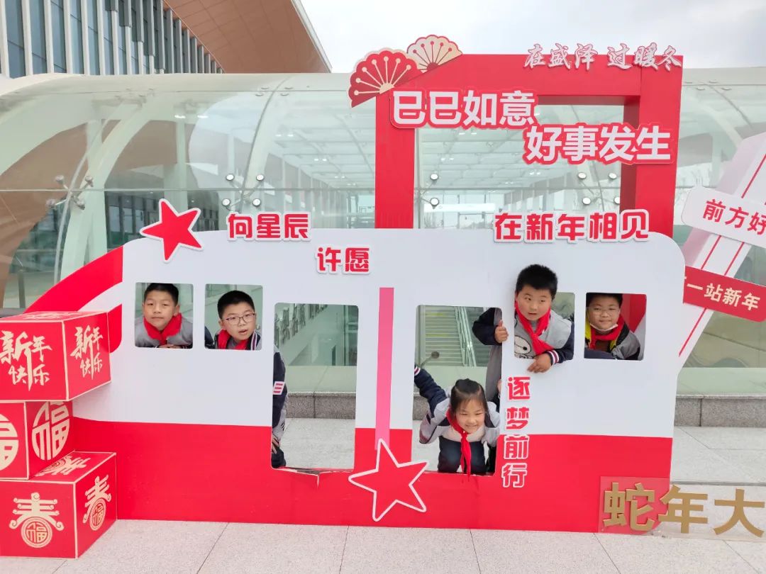 第三站沪苏湖高铁盛泽站。踏入高铁站,宽敞明亮的大厅、巨大的穹顶,阳光透过玻璃洒落,仿佛为整个空间披上了一层金色的光辉。高铁站,这个充满活力与希望的地方,见证着人们的相聚与离别,也承载着无数的梦想与憧憬。它不仅是交通的节点,更是一幅生动的现代风景画卷。通过现场参观,激发孩子们的爱国情怀、民族自信。