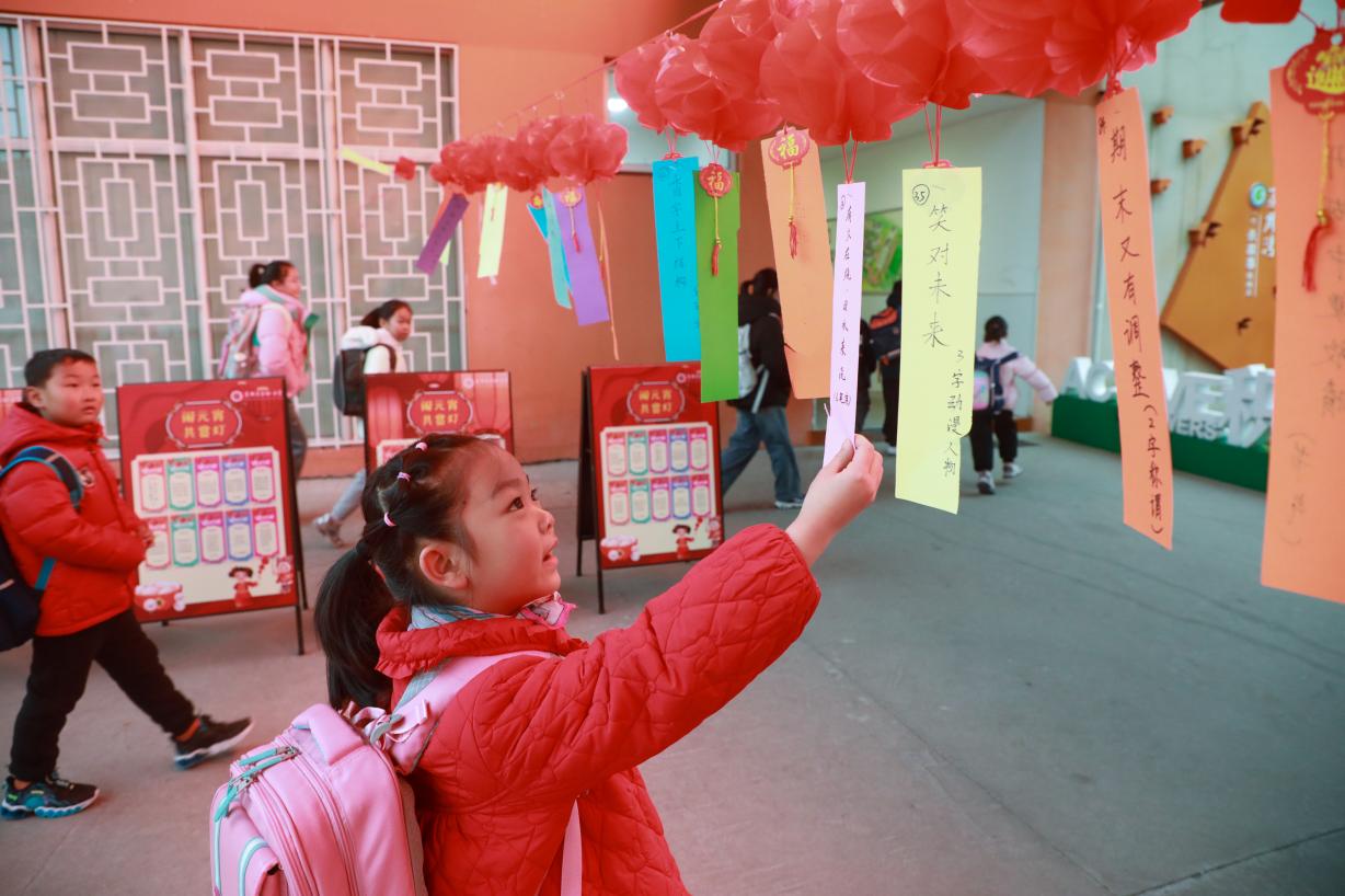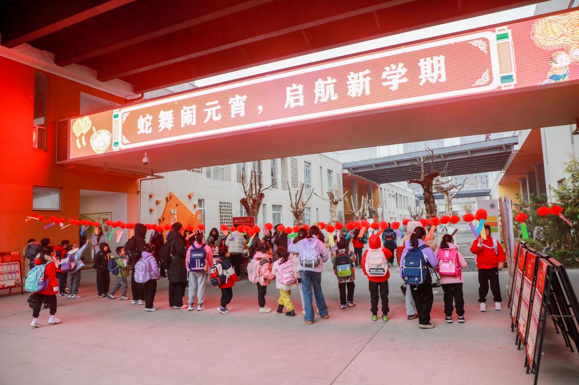 春回大地,万象更新。苏州湾实验小学校园内张灯结彩、喜气洋洋,一场以“蛇舞闹元宵 启航新学期”为主题的开学报到活动正在热闹举行。孩子们在浓浓的年味和传统文化氛围中,迎来了新学期。