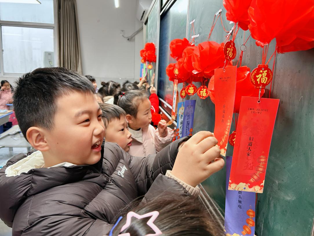 各班学生满怀热情地参与了猜灯谜活动。他们或独自站在灯谜前陷入沉思;或三两成群,结伴探讨,共同寻找谜底。每当有人猜中谜底,周围都会爆发出热烈的掌声与欢笑声,为新学期的学习生活增添了无限的欢乐与活力。