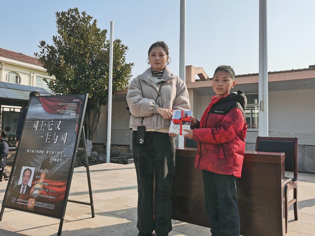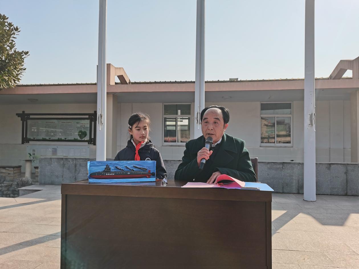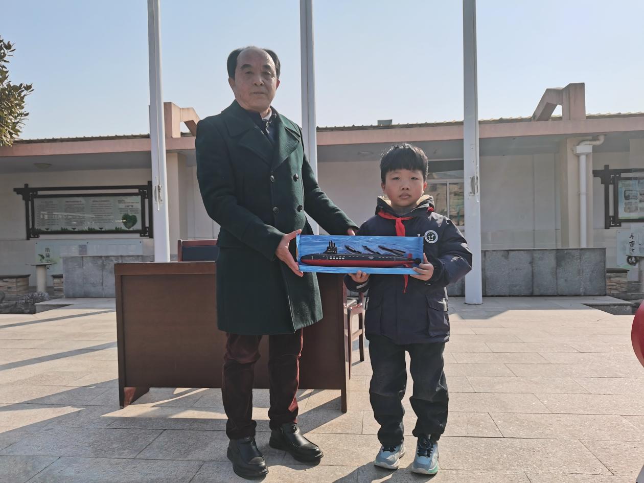 活动现场,俞老师为队员们讲述了黄旭华院士感人的事迹和伟大成就,号召大家向黄院士学习,学习他对科学的热爱和对祖国的无限忠诚,传承黄院士的人文和科学精神,将他的强国梦和民族复兴梦一代一代传下去,以黄院士为榜样,好好学习,成为对社会有用的人才,成为合格的接班人。活动中,俞老师和红洲村关工委程老师代表还为队员代表赠送了核潜艇模型以及《于无声处—黄旭华传》。