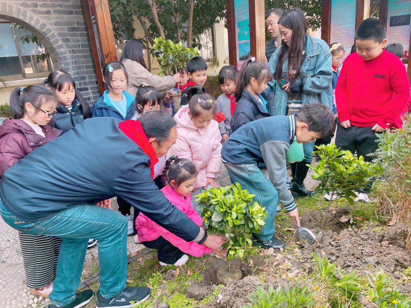 植树节来临前夕,3月11日中午,盛泽小学组织开展“‘植’此亲绿,共‘树’未来”植树节活动,少先队代表与关工委“五老”共同植下春天里的第一颗树苗。活动中,队员们干劲十足,在“五老”张海荣老师的指导下,认真完成挖坑、栽苗、填土、浇水等步骤,亲手种下绿色的希望。