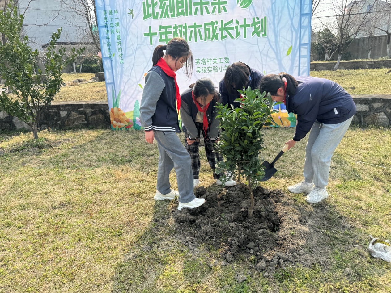 3月11日,吴绫实验小学联合茅塔村关工委开展了以“此刻即未来——十年树木成长计划”为主题的植树活动。