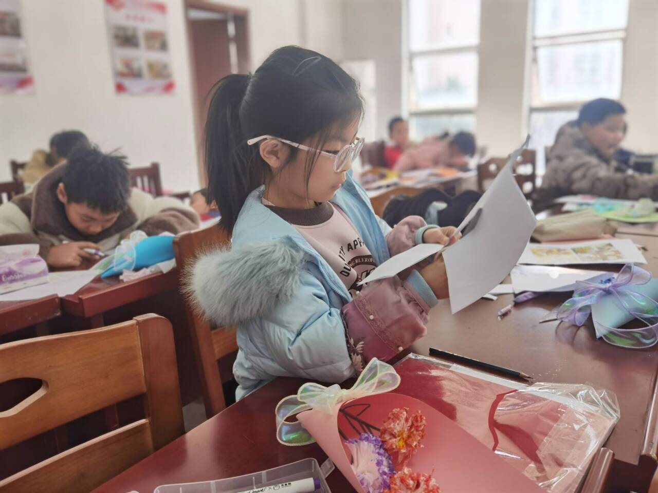 孩子们在徐兰老师的讲述中了解到“三八”妇女节的由来及意义,感受到她们在自己成长过程中付出的艰辛和倾注的心血,体会她们浓浓的关爱,从而萌发了感恩之情。紧接着,孩子们用稚嫩的小手亲手制作送给女性长辈的“爱心礼物”。在活动的过程中,孩子们那认真的神情、灵动的小手、持之以恒的耐力与坚持,每一个细微的动作中都表达着浓浓爱意。当一朵朵美丽的手工鲜花在手中绽放时,当一顶顶精美的小皇冠制作完成时,孩子们乐开了笑脸,纷纷表示要回家送给最美的那个“她”!
