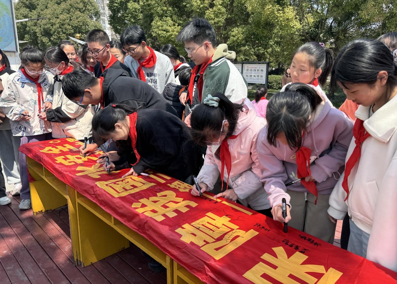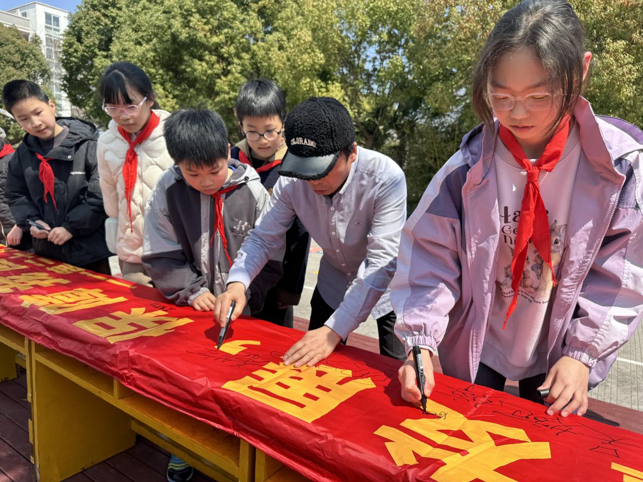 随后,另一位优秀五老代表董其荣老师带领学生来到节约用水宣传横幅前,鼓励大家以实际行动响应节水号召。在董老师的引导下,孩子们纷纷在横幅上郑重地签下了自己的姓名,承诺将从自身做起,从小事做起,节约用水,保护水资源。孩子们纷纷表示,在以后的日子里,他们会更加注意用水细节,比如及时关闭水龙头、循环利用水资源等,为节约水资源贡献自己的一份力量。