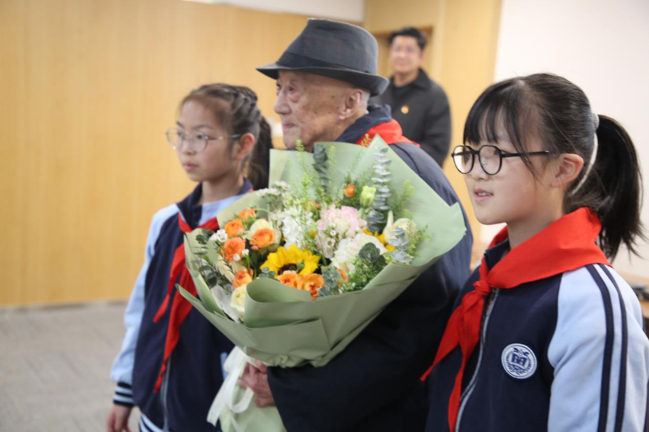 在这场备受瞩目的活动中,社区特意邀请到了德高望重的“中国好人”杨自中老人走进大家的视野。杨自中老人的一生,就像是一部波澜壮阔、跌宕起伏的奋斗史诗,充满了传奇色彩。少先队员为杨自中老人献上鲜花、戴上红领巾,杨老热情地和孩子们合影。