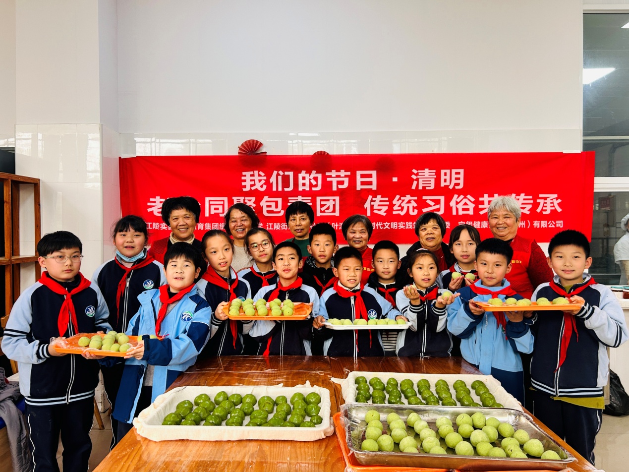 4月1日,江陵街道山湖社区关工委、江陵实验小学教育集团绣湖东路小学、宝玺健康共同开展“老少同聚包青团 传统习俗共传承”活动。