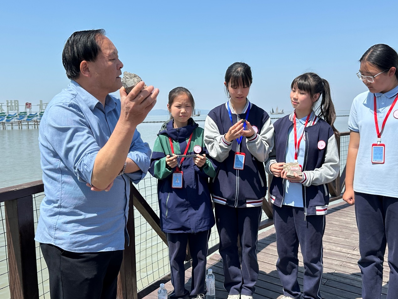 活动当天,七都中学的师生们在吴溇村工作人员带领下,深入太湖湿地保护区,近距离观察湿地生态系统。同时邀请吴江区溇港文化研究会会长孙菊林先生为同学们讲解太湖的形成原因、太湖物种的变化、太湖湿地的保护以及对环境的影响。同学们通过专业讲解,了解了太湖湿地在净化水质、调节气候、保护生物多样性等方面的重要作用。