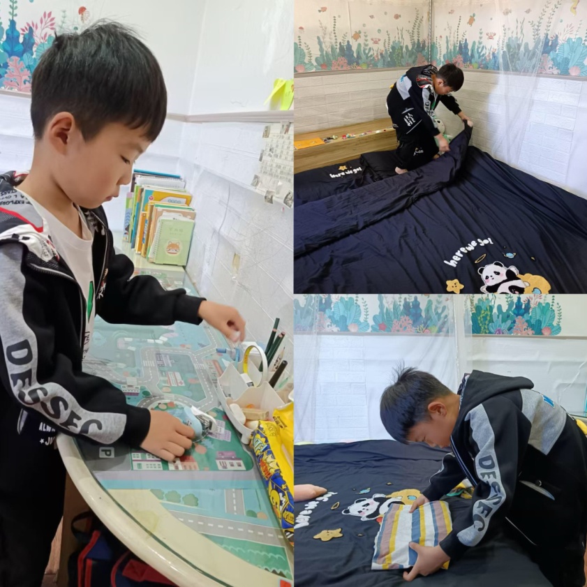 一、整理活动。低年级苹果娃们积极参与到家庭日常事务中,从整理衣服到整理书桌,整理房间,每一项任务都完成得有模有样。