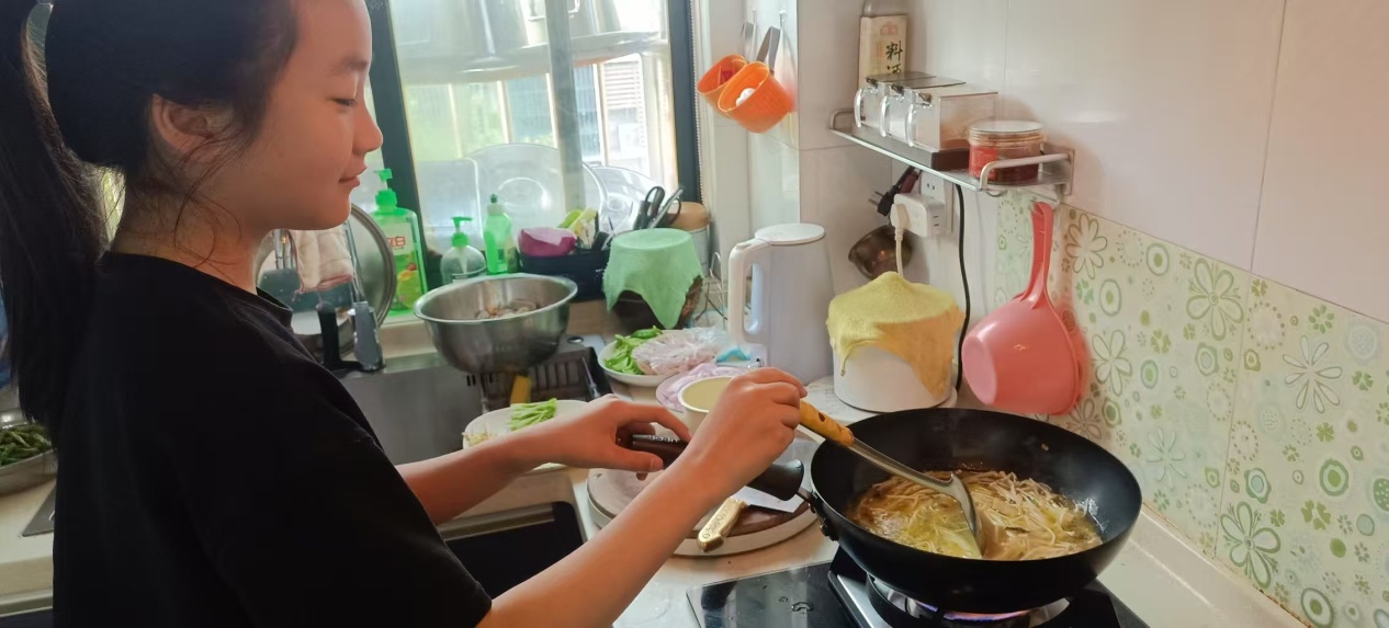 三、炒菜活动。高年级苹果娃们选择做自己喜欢的一道菜,大家在劳动中获得了欢乐与满满的成就感,脸上洋溢着幸福的笑容。