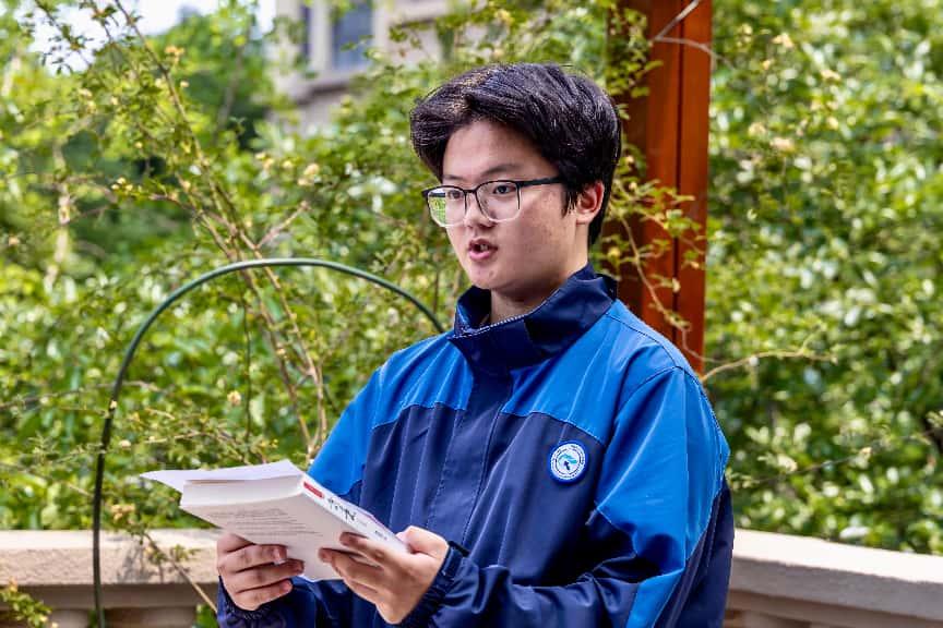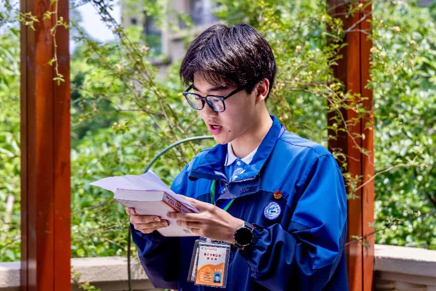 王志豪(文体部分管,网络2301班):"我们要做红色基因的传承者,以书籍为火炬照亮奋斗征程,让五四精神在新时代绽放璀璨光芒。"