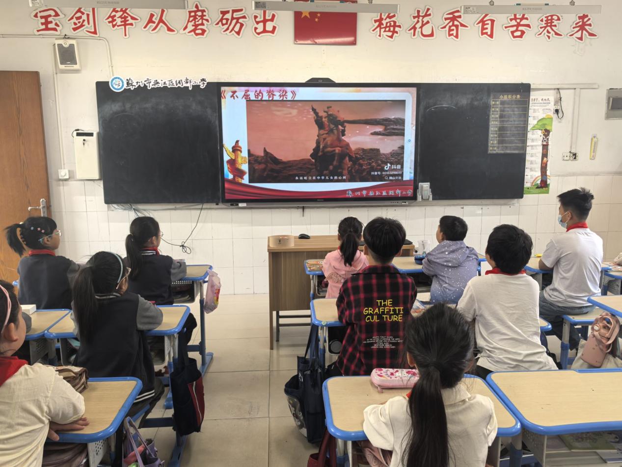 此次活动以阅读《不屈的脊梁》为契机,旨在培养学生的爱国情怀,增强他们对历史的认知和理解。四年级学生在深入阅读该书后,纷纷主动走进一二年级教室,为弟弟妹妹们分享自己的读书心得和感悟。四年级的小讲解员们用生动的语言、真挚的情感,讲述着书中那些感人至深的抗战故事,传递着坚韧不拔、英勇无畏的抗战精神。一二年级的小朋友们聚精会神地听着,眼中闪烁着好奇与崇敬的光芒。通过这次分享活动,低年级的小朋友们对那段波澜壮阔的历史有了初步的认识,在幼小的心灵中种下了爱国的种子。