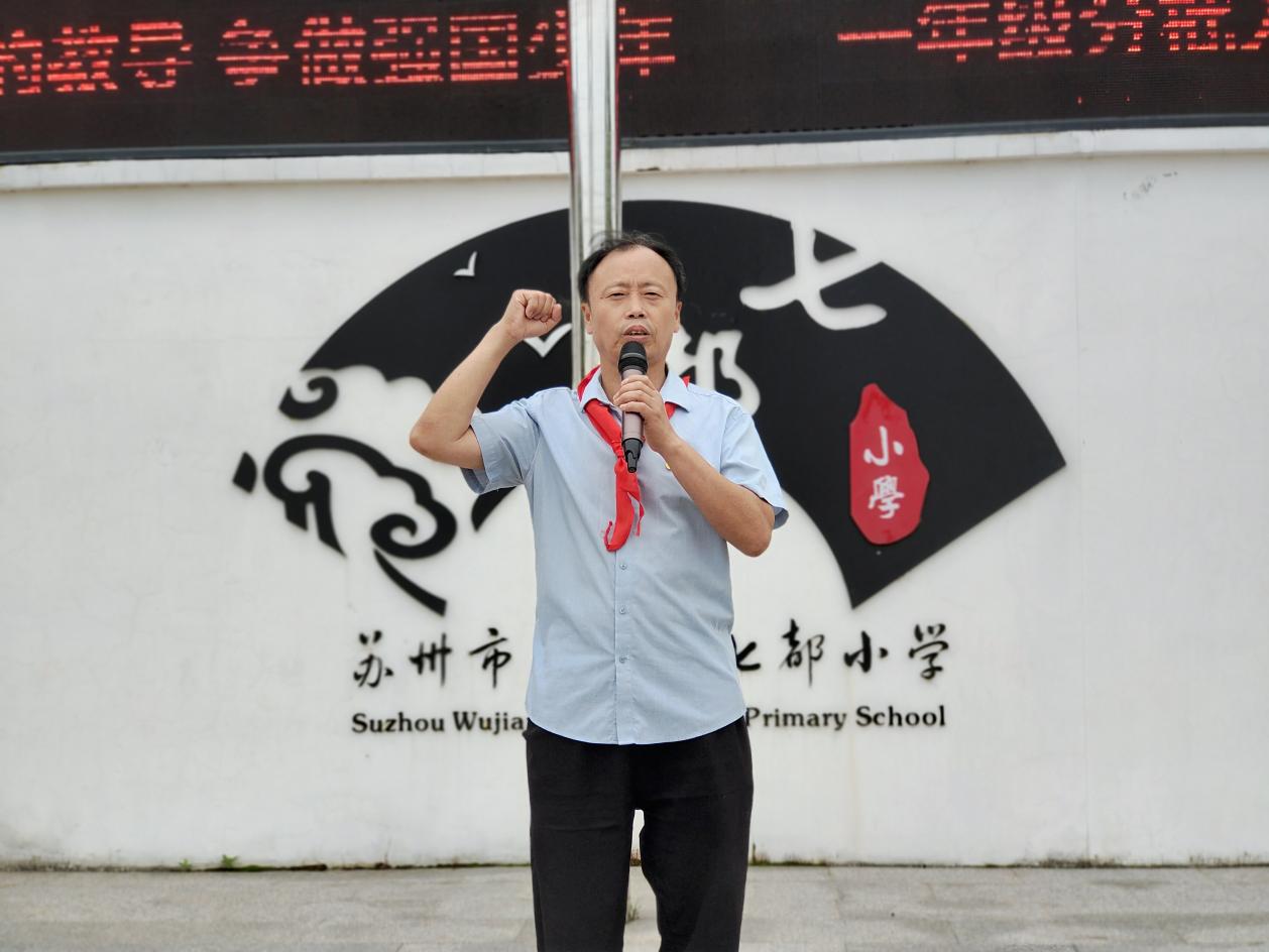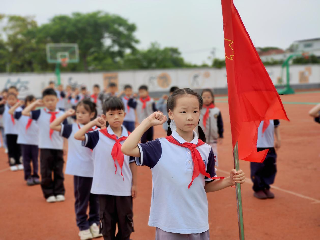 5月28日,七都小学在学校后操场举行“牢记党的教导,争做强国少年”一年级分批入队仪式,关工委“五老”代表董其荣老党员亲临现场。仪式上,董老师声音洪亮,带领新队员们庄严呼号,那坚定的神情、激昂的语调,传递着对红色基因传承的执着。
