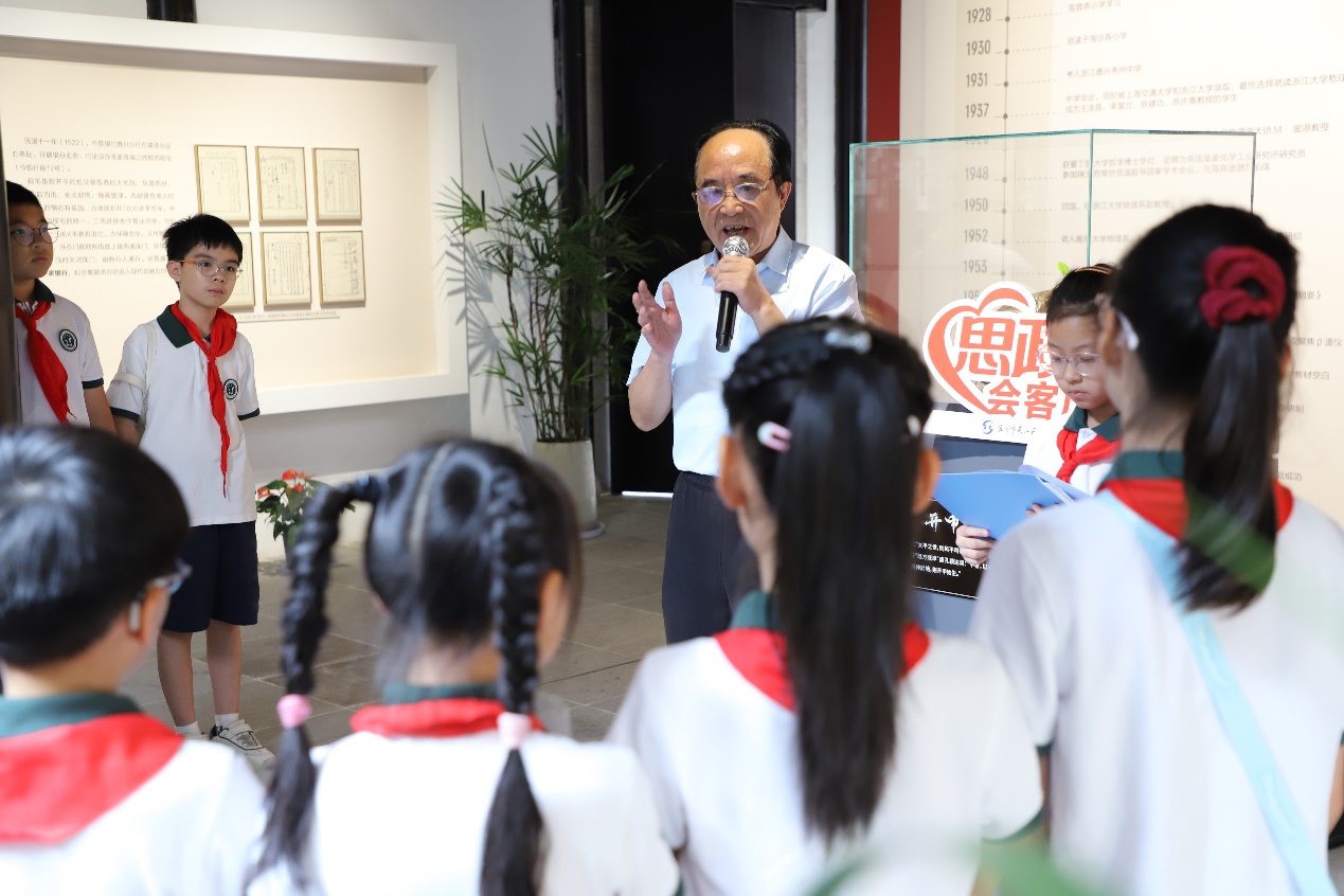活动还特邀盛泽镇关工委“五老”代表俞荣堂老师走进“红领巾思政会客厅”,以程开甲的生平故事为切入点,生动阐释“两弹一星”科学家精神,号召同学们好好学习,将爱国情怀和科学家精神内化于心,外化于行。