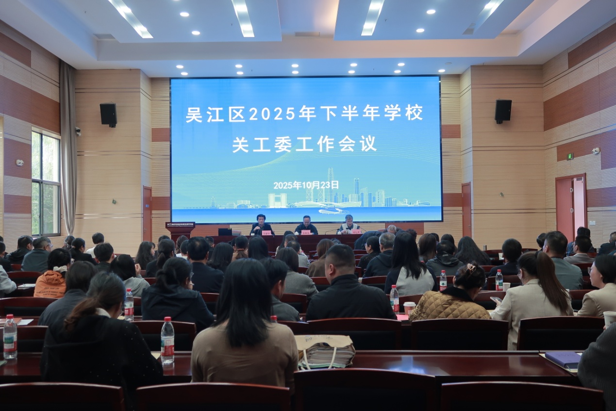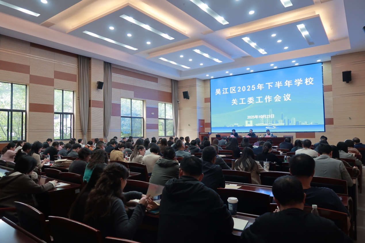10月23日下午,吴江区2025年下半年学校关工委工作会议在区教师发展中心召开。区关工委副主任张林法,区教育局关工委常务副主任俞弘声、副主任冯建华;各校关工委主任以及讲师团成员、片长等出席了会议。会议回顾总结了2025年上半年全区教育系统关工委工作,重点部署2025年下半年的工作。