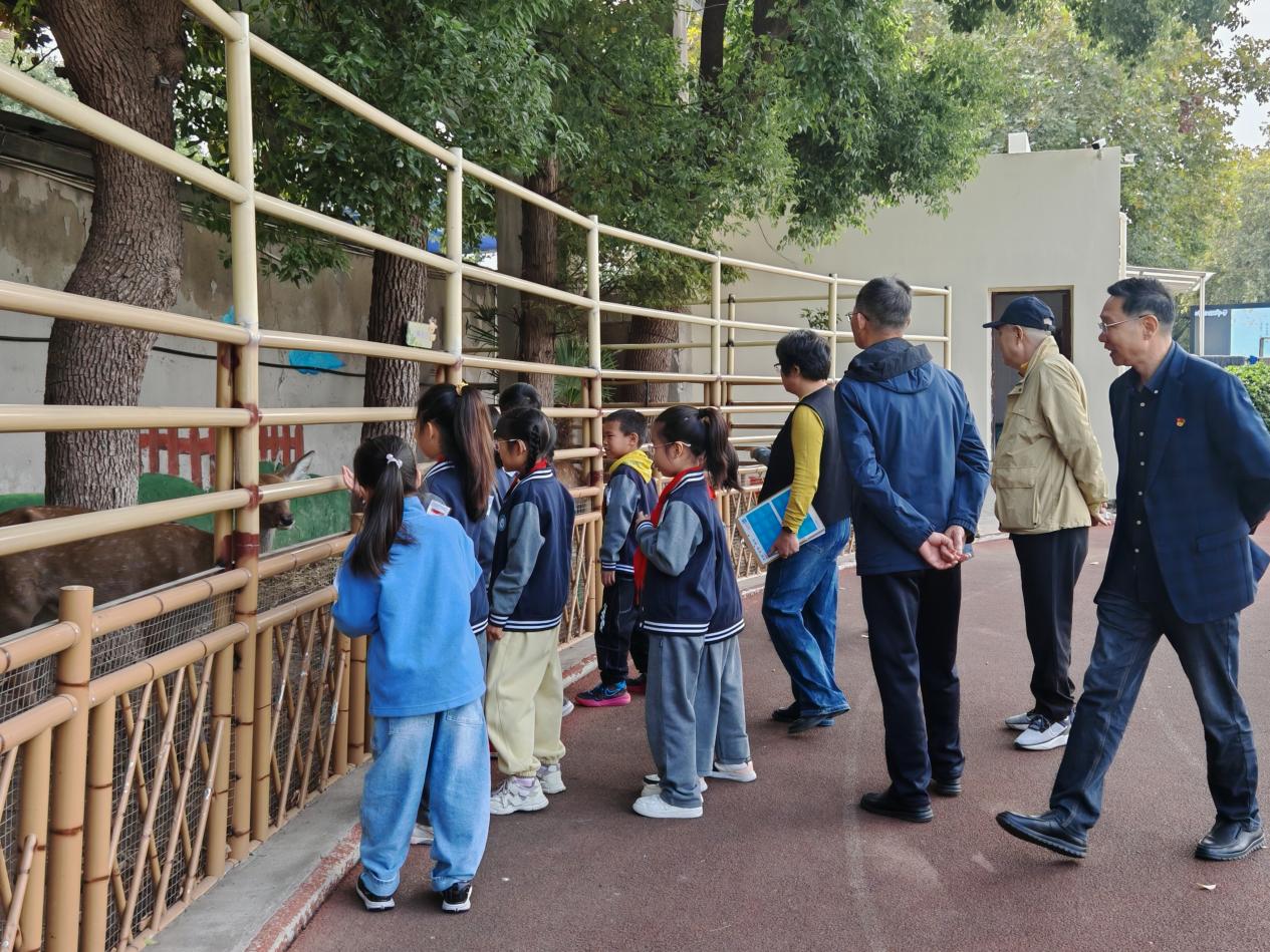 秋阳和煦,小满园内欢声笑语不断。精神矍铄的退休教师在“红领巾”讲解员的热情引导下,兴致勃勃地参观各个动物展区。孩子们熟练地介绍着园内小动物的生活习性和趣事,分享他们参与饲养和照料的心得体会。老教师们看着孩子们与小动物之间的亲密互动,聆听着他们充满爱心的讲解,脸上洋溢着欣慰的笑容。他们不时俯身与孩子们交流,慈爱地询问动物们的生活情况,一幕幕“银发”与“红领巾”亲密交流的场景格外温馨。