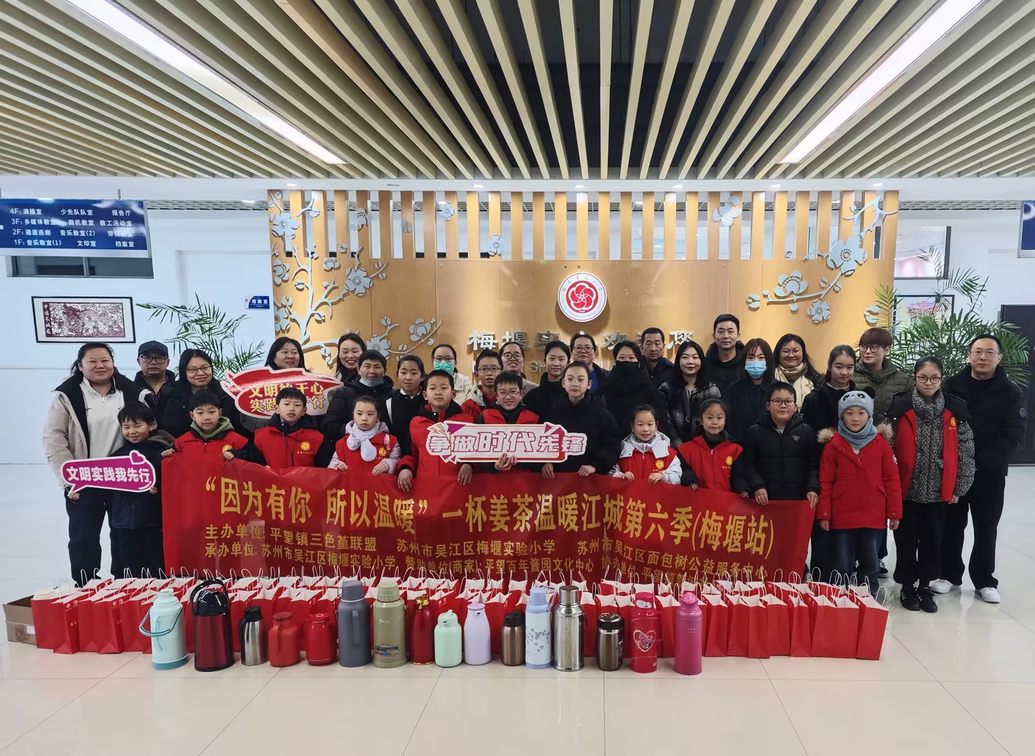 2026年元旦清晨,天尚未亮,梅堰实验小学的16组亲子家庭已开启了一场温暖的行动。他们在学校关工委与德育处的联合组织下,积极参与“一杯姜茶,温暖江城”第六季平望站公益活动,以亲手制作的姜茶与真挚问候,向节日坚守岗位的一线工作者致敬,传递感恩与关爱。