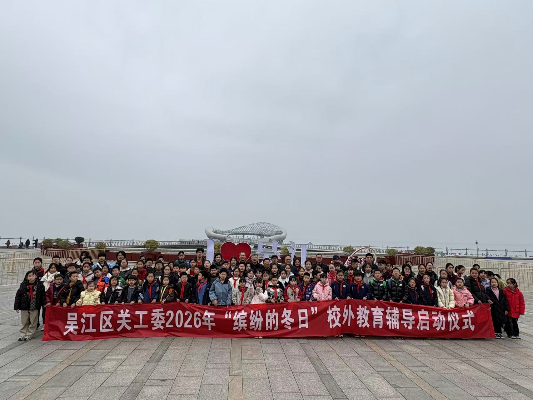为深入落实省关工委关于用好《关心下一代周报》、开展课外教育实践活动的部署,以及市、区关工委 “五心” 教育实践要求,2月5日,吴江区关工委联合区教育局关工委组织开展 “我爱家乡(吾爱吴江)” 研学活动——暨吴江区关工委2026年“缤纷的冬日”校外辅导启动仪式。全区 400 余名中小学生师生走进东太湖(太湖新城),在行走中感悟家乡魅力,在实践中提升综合素养。