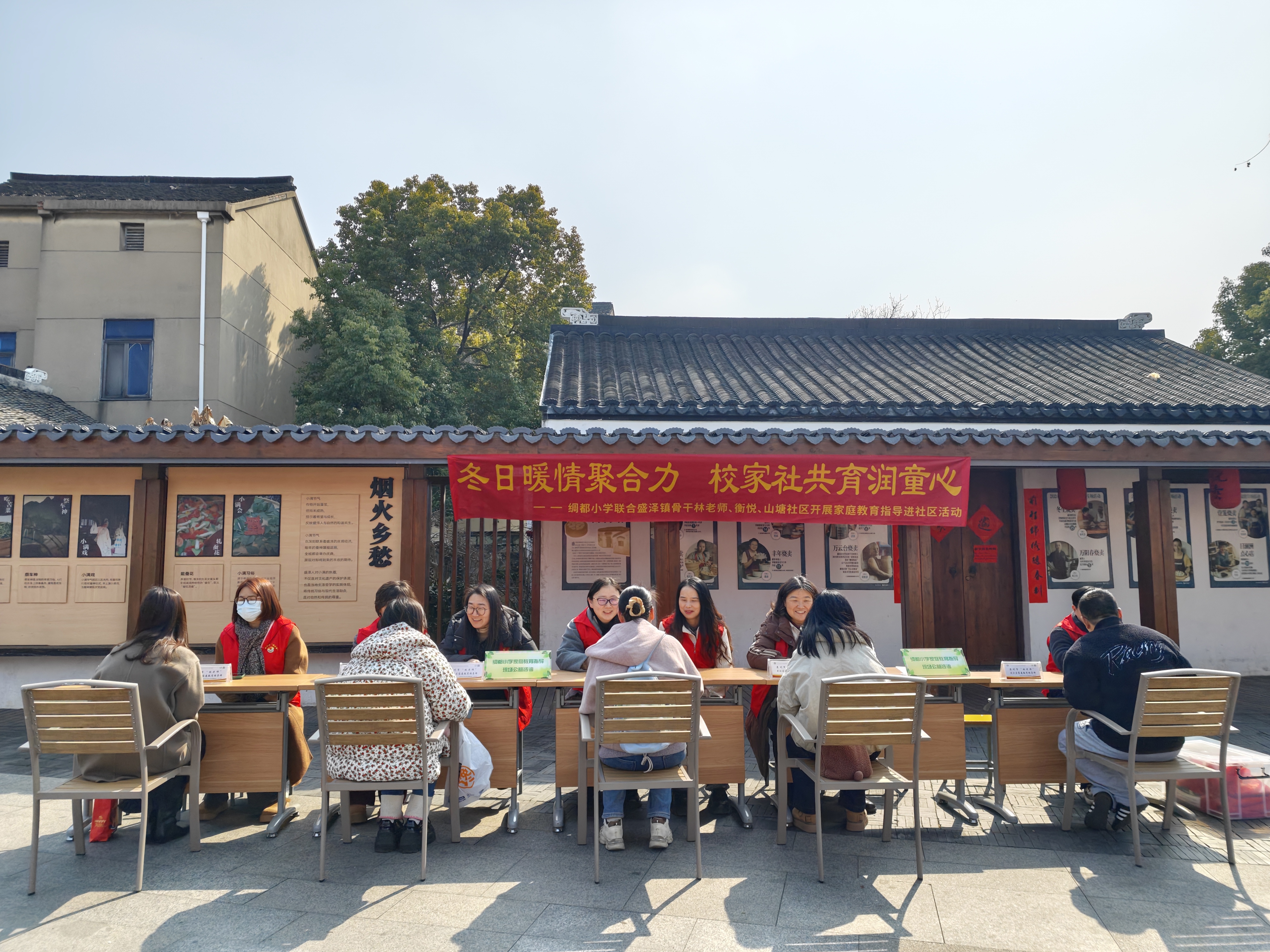 为进一步普及科学家庭教育理念,打通家校社协同育人的“最后一公里”,2月11日,绸都小学联合盛泽镇骨干“林老师”团队、衡悦社区关工委志愿者,走进历史文化气息浓厚的蚕花里街区,举办了一场别开生面的公益家庭教育指导活动,为往来市民送上了一份新春“育儿锦囊” 。