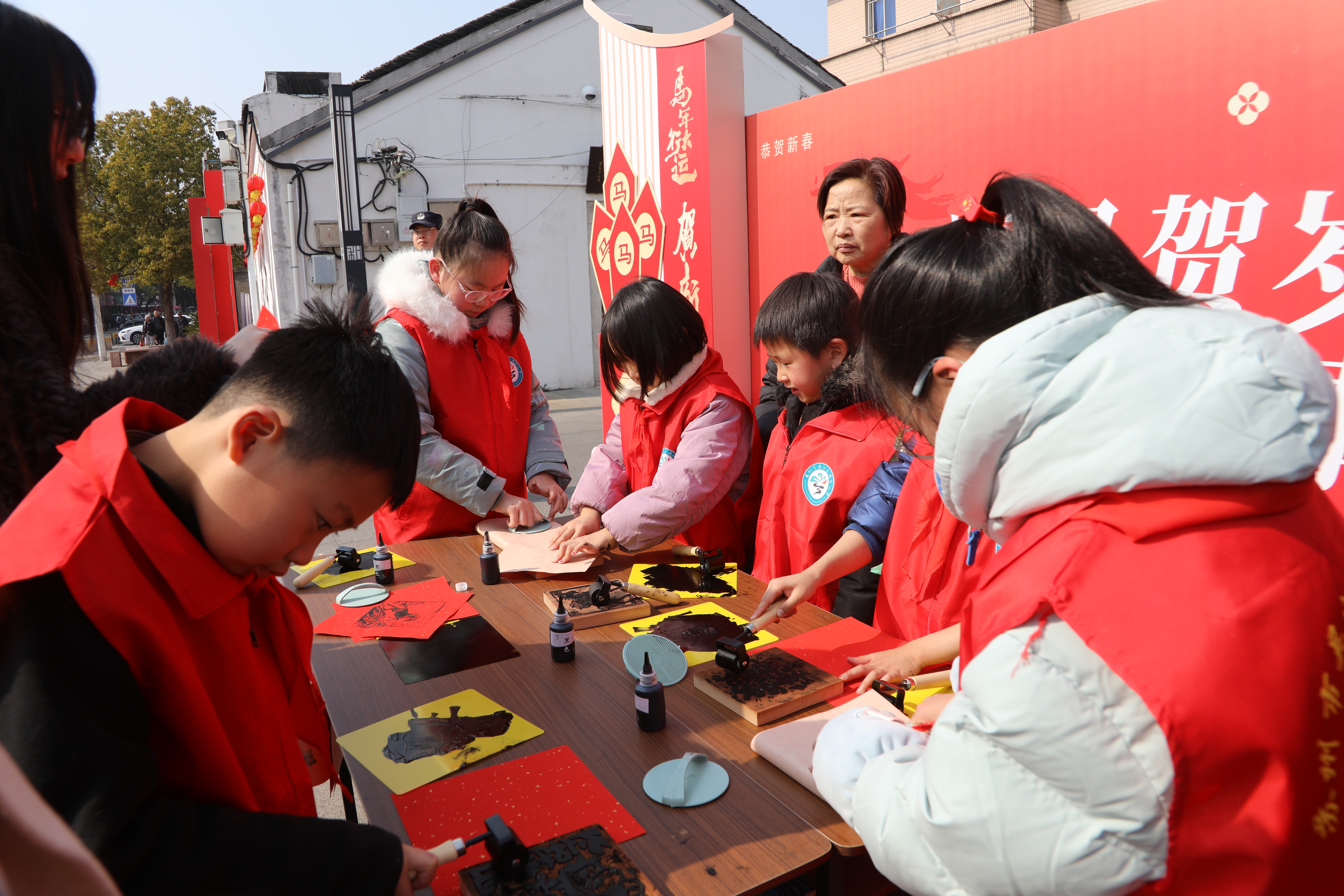 与此同时,非遗拓印体验区同样热闹非凡。在社区志愿者和学校老师的指导下,孩子们亲手体验古老的拓印技艺。他们将精心制作的马年吉祥图案、新春祝福纹样轻轻拓印,一幅幅古朴清晰的作品跃然纸上。居民们接过孩子们送上的拓印作品,脸上洋溢着喜悦,纷纷为这份承载着传统文化的新年礼物点赞。