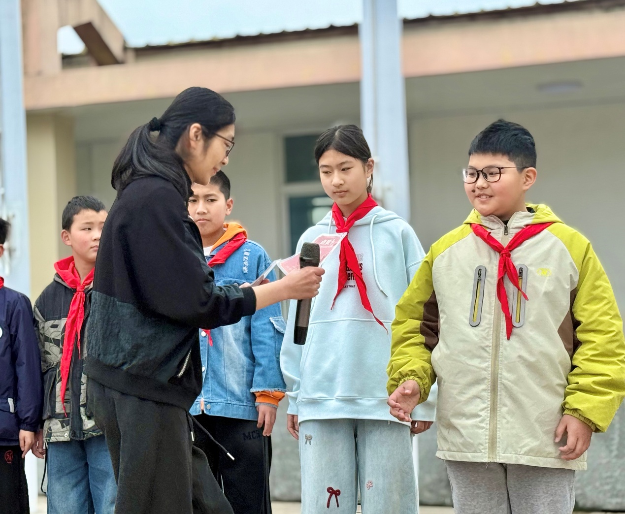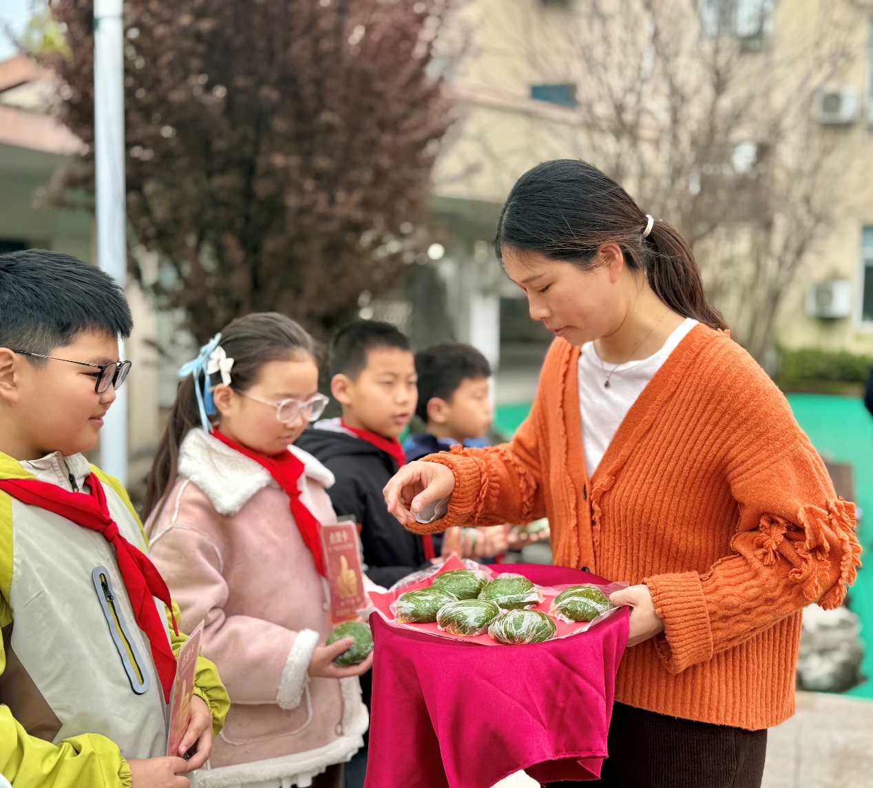 活动的最后环节将现场气氛推向高潮。经过一周的综合评比,荣获“优秀护旗手”称号的队员们依次登台。在全体师生的见证下,“五老”代表与关工委代表共同为他们送上寓意深远的青团。手捧青团,队员们脸上洋溢着自豪的笑容,这份特殊的奖励既是对他们表现的肯定,更寄托着长辈们对下一代健康成长的美好期许。