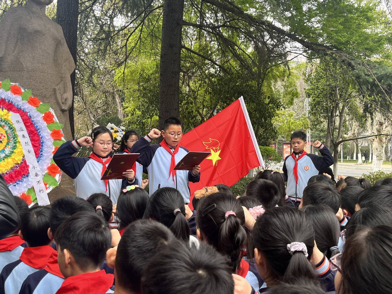 少先队员代表以稚嫩却坚定的声音,表达对革命先烈的无限敬仰,并向全体队员发出倡议:以先烈为榜样,铭记革命历史,传承英烈精神,学习他们勇敢无畏、无私奉献的崇高品格,勤奋学习、锤炼本领,以少年之姿扛起时代责任。